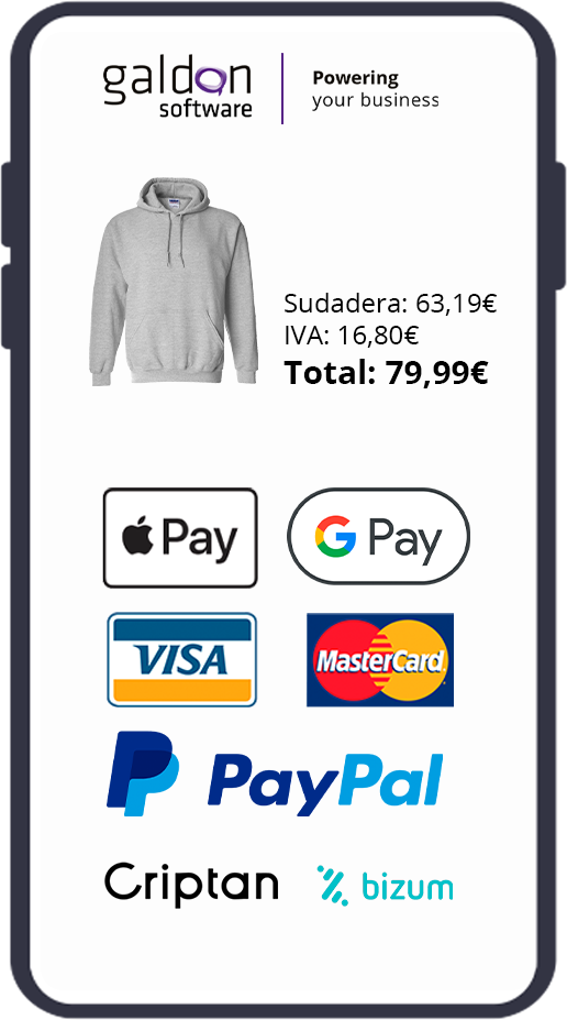 Pague de la manera mas cómoda con Tarjeta, Paypal, Bizum, GooglePay, ApplePay o CriptanPay.